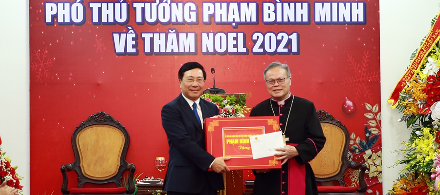 Ngày 22/12, Phó Thủ tướng Thường trực Chính phủ Phạm Bình Minh đến thăm, chúc mừng Giáng sinh và năm mới 2022 tại Tòa Tổng...