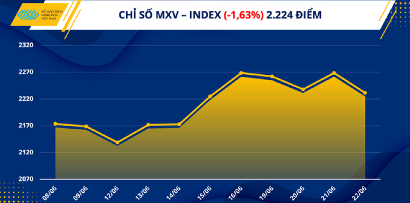 Số liệu từ Sở Giao dịch hàng hóa Việt Nam (MXV) cho thấy, thị trường hàng hóa nguyên liệu thế giới đóng cửa ngày 22/6...