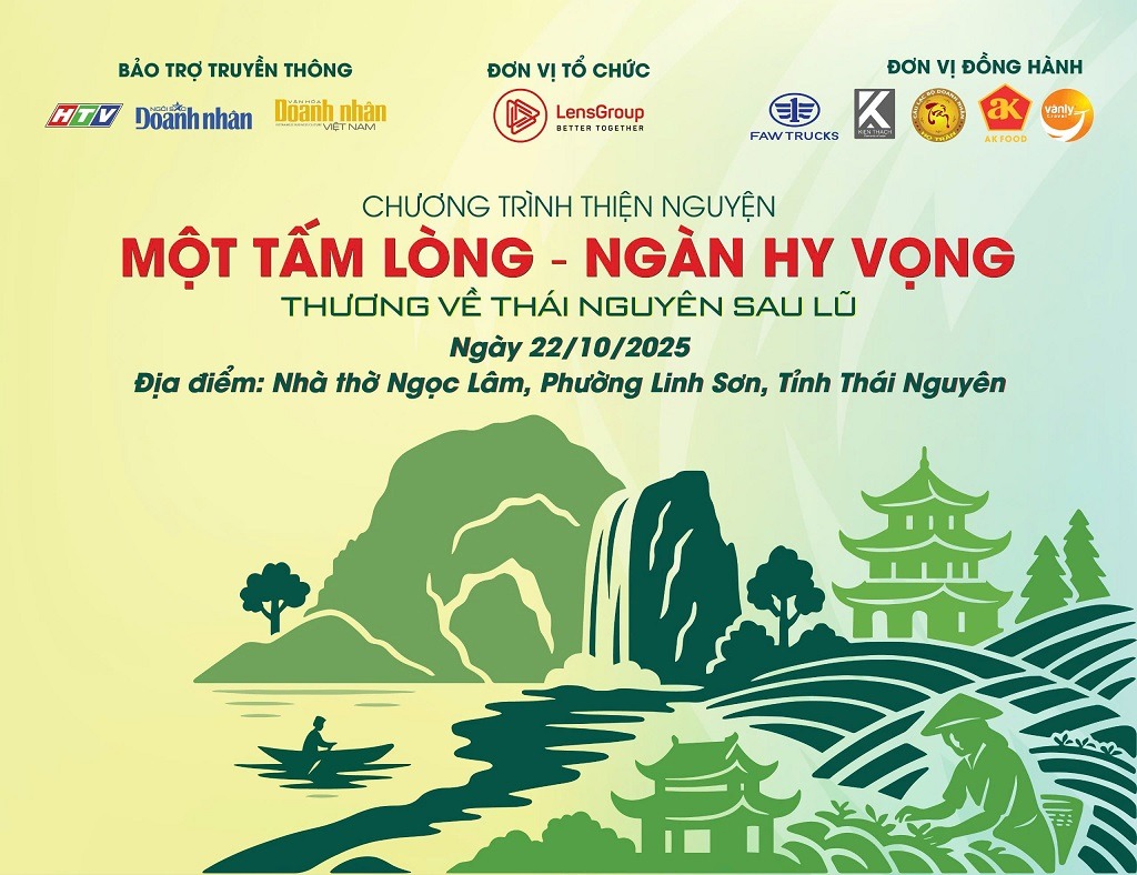 Chương trình thiện nguyện “Một tấm lòng – Ngàn hy vọng, Thương về Thái Nguyên sau lũ” do Công ty Lens Group tổ chức sẽ diễn ra vào ngày 22/10/2025